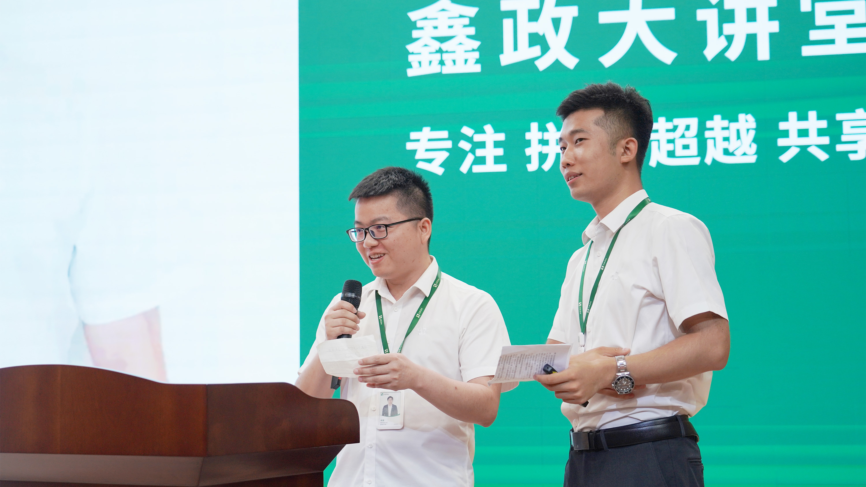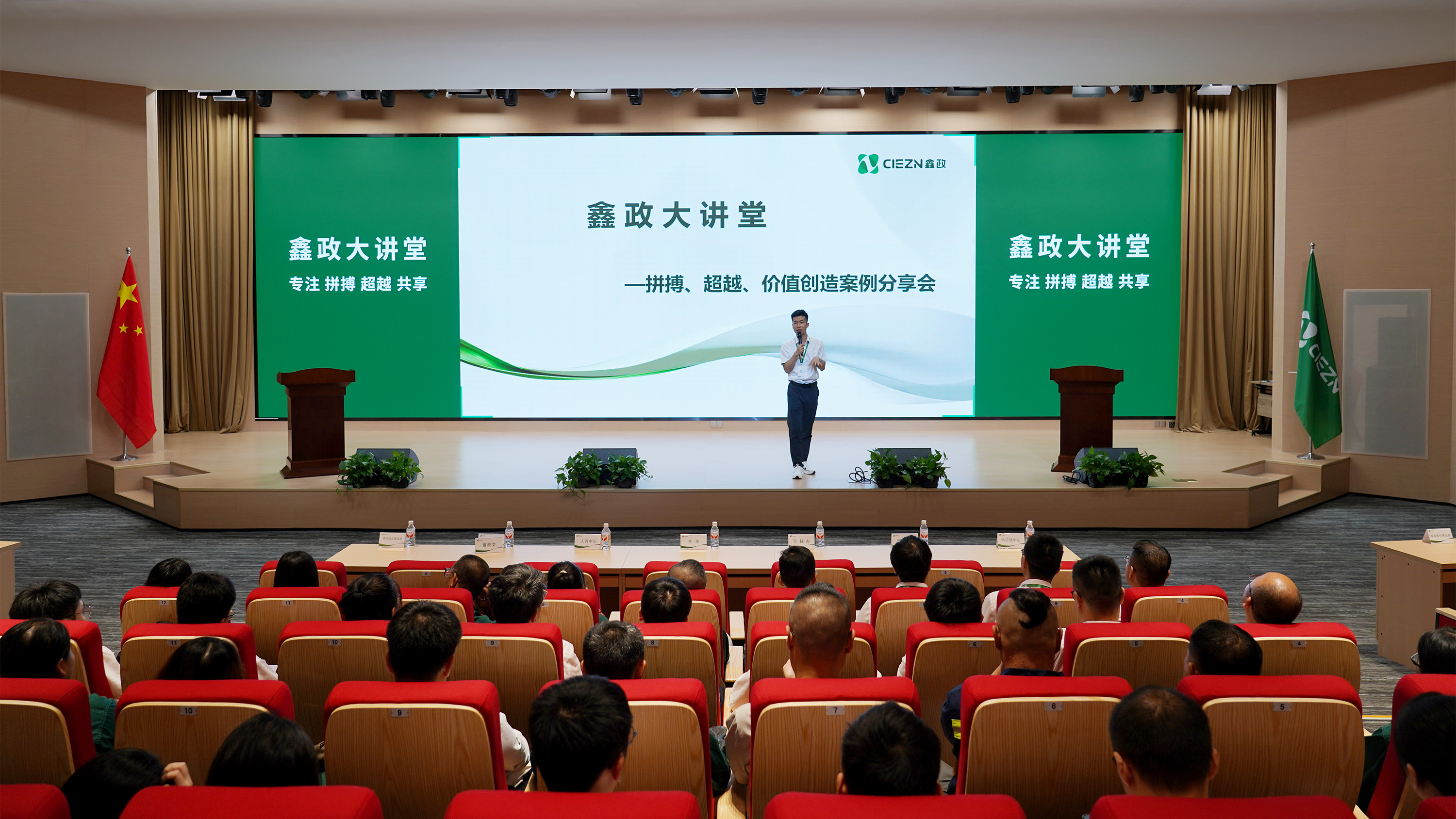 入場(chǎng)時(shí),全體人員將寫有“自己在鑫政的小目標(biāo)”的紙條投入“時(shí)光信箱”——這些關(guān)于成長(zhǎng)與收獲的樸素愿望,將在年末被鄭重開啟,見證期待如何成長(zhǎng)為驚喜。緊接著的是大講堂的主角們,用他們的故事為目標(biāo)注入行動(dòng)方向。