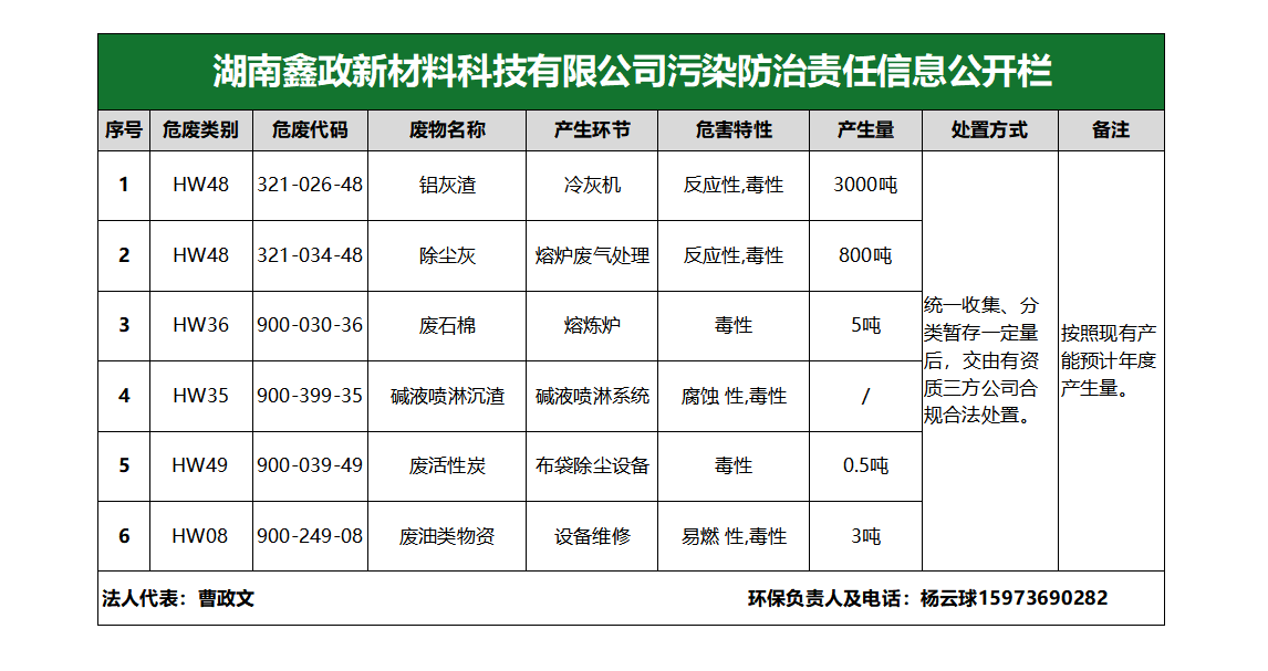 鑫政新材料科技有限公司污染防治責(zé)任信息公開